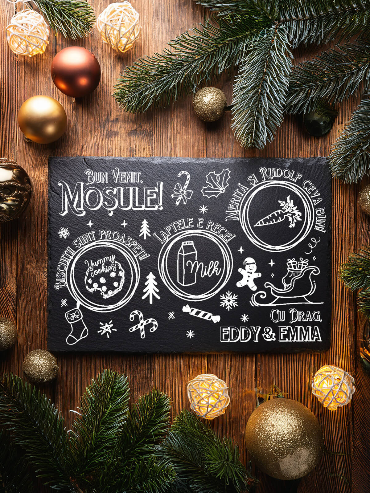Tavă pentru Mos Craciun | Platou Ardezie Gravat Personalizat